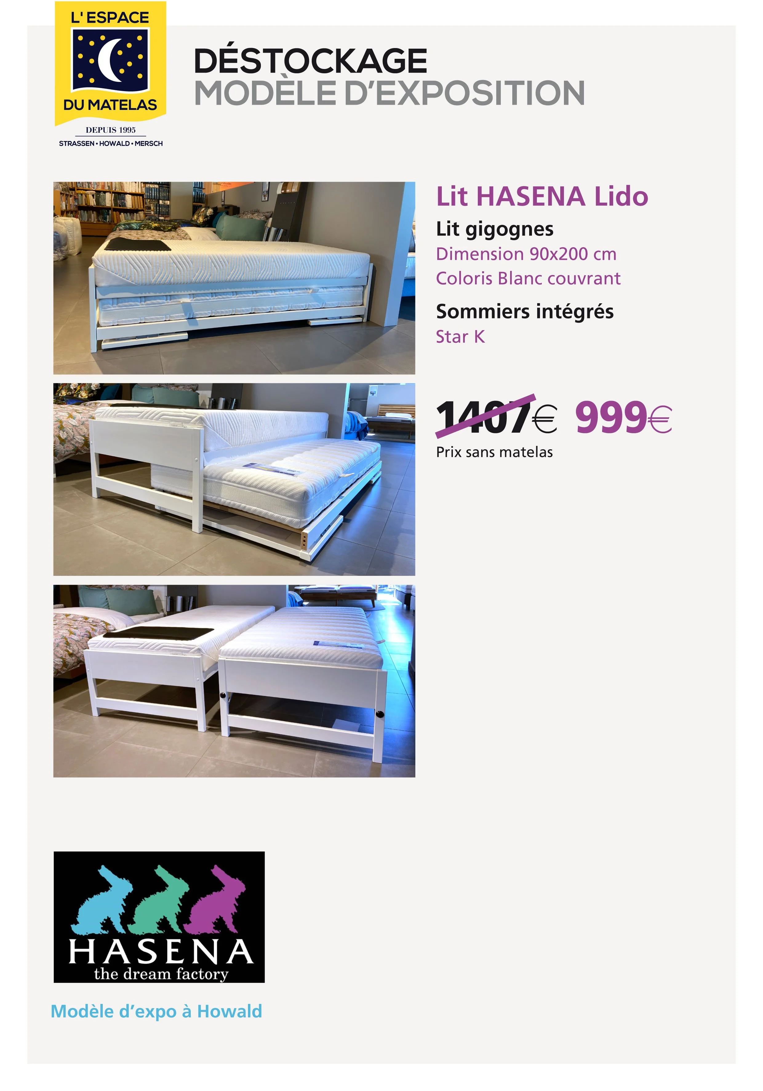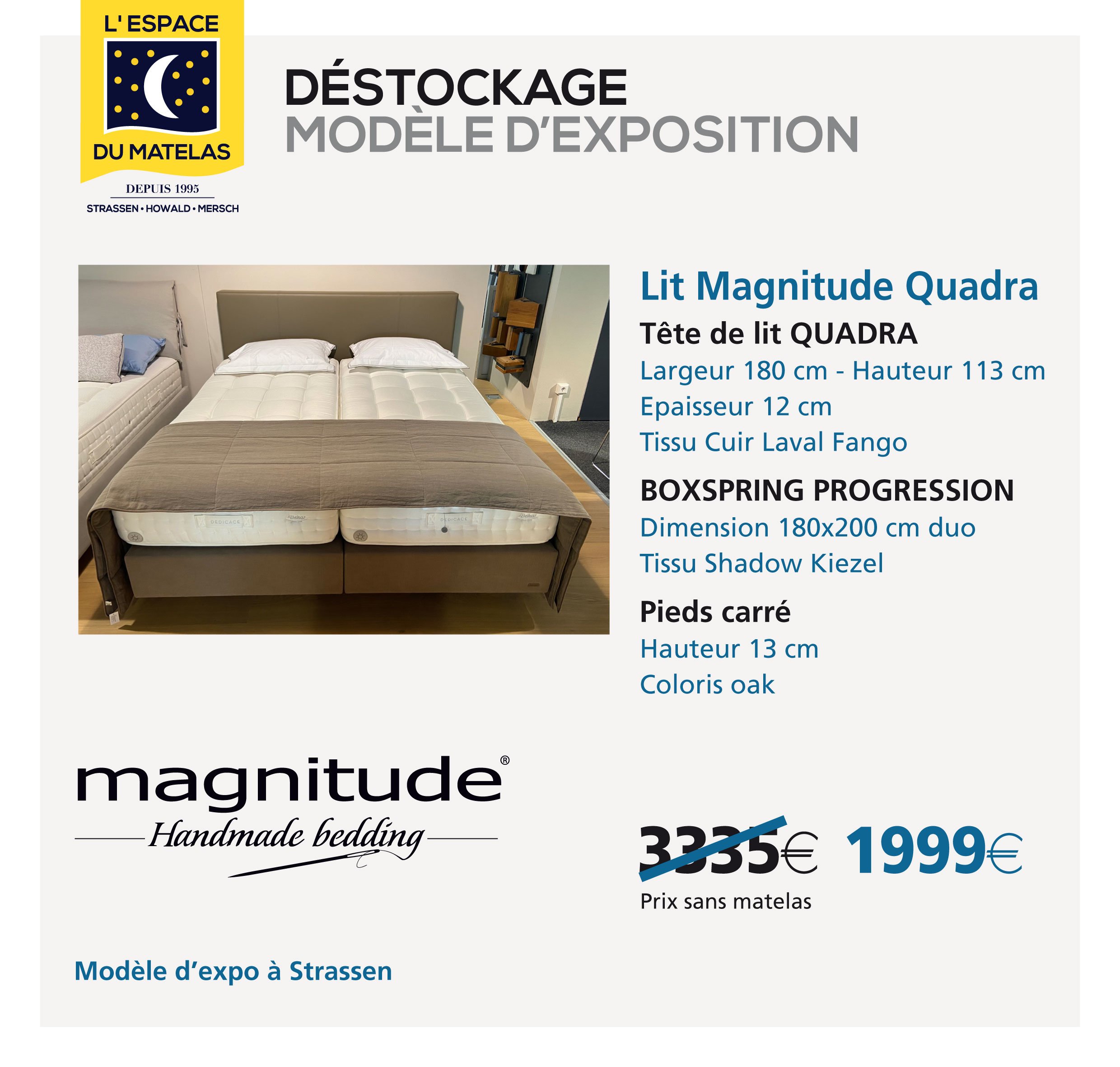 Profitez du déstockage de nombreux lits d'exposition Inscrivez-vous avec votre adresse e-mail afin de recevoir nos actualités. Adresse e-mail S’inscrire Merci pour votre inscription !