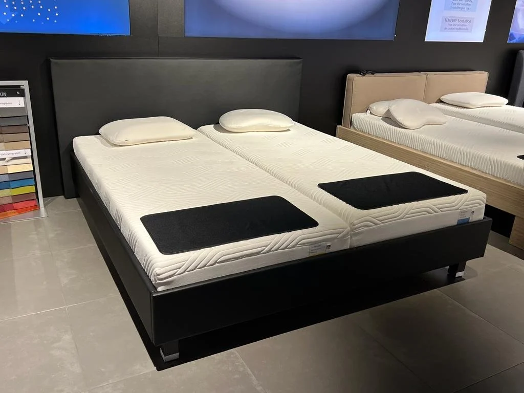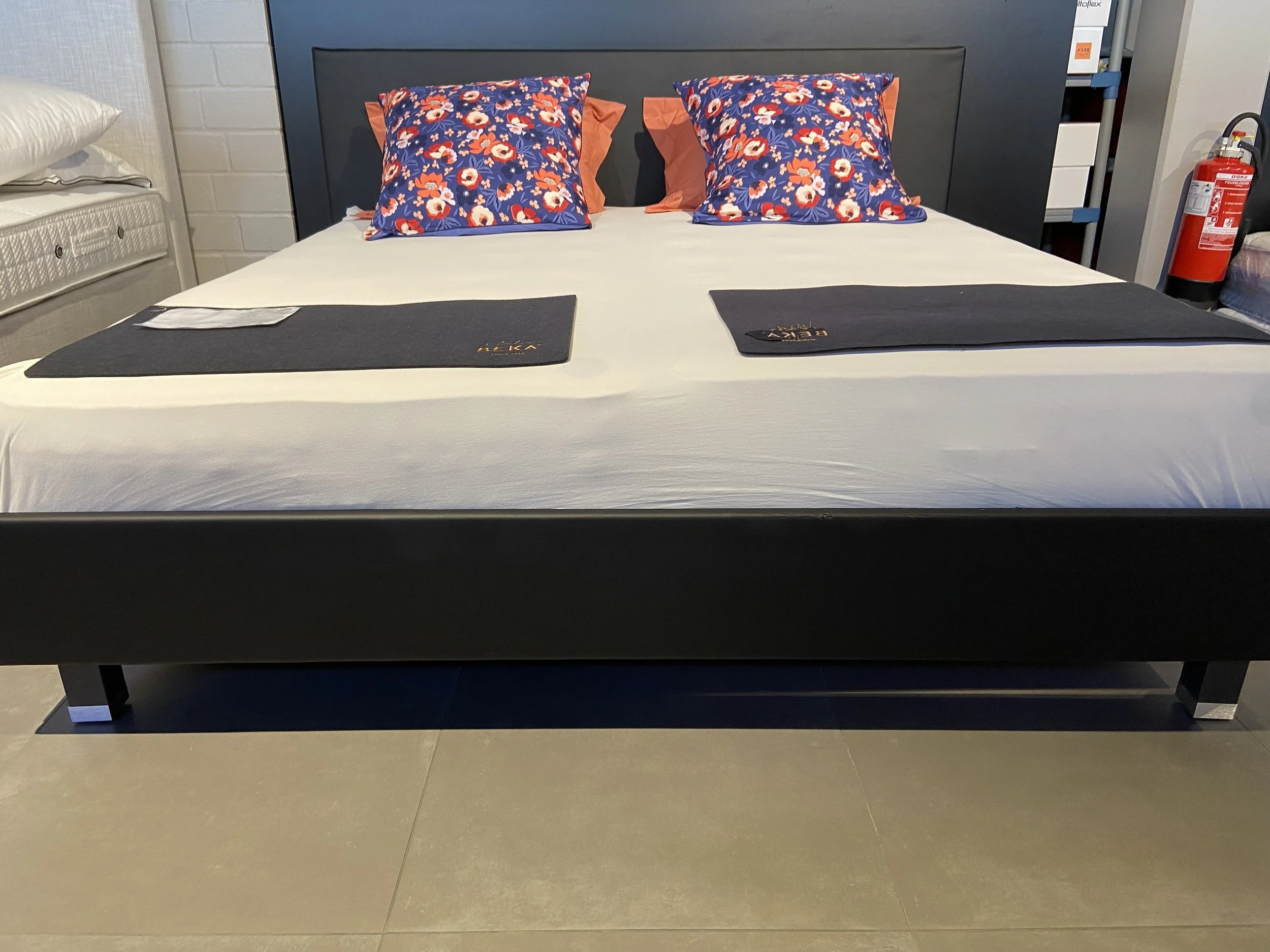 Lit Lattoflex GarniTête de lit LigneLargeur 200 cm Hauteur 100 cmEpaisseur 8 cmSimili Cuir Pure OnyxCadre de lit fixeDimension 180 x 200 cmSimili Cuir Pure OnyxPied damier aluHauteur 15 cmColoris Grey oak 1075 € Modèle d’esposition 799 €Prix sans matelas et sans sommier Disponible à Strassen